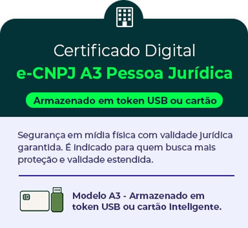 Armazenamento em token USB ou cartão. Validade jurídica garantida em mídia física.